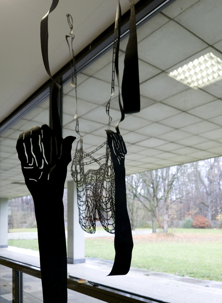 Einzelausstellung im Kunst Kabinett Hespert (60 km östlich von Köln). Ich zeige in einer größeren Rauminstallation 6 Folienschnitte aus der Serie, "Im Flug" (siehe Fotos), außerdem Holzzeichnung, ausgewählte Druckgrafiken und kleine Folienfiguren.